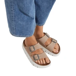 The Arizona Papillio combines two of Birkenstock’s most classic styles. Featuring the classic two-straps from the Arizona and a stylish platform sole with extra deep tread line from the Papillio, you’re guranteed to stay comfortable and look stylish all day long. The upper is made from especially soft suede.Â