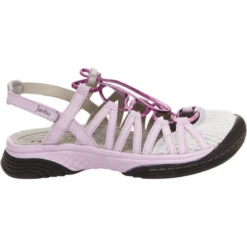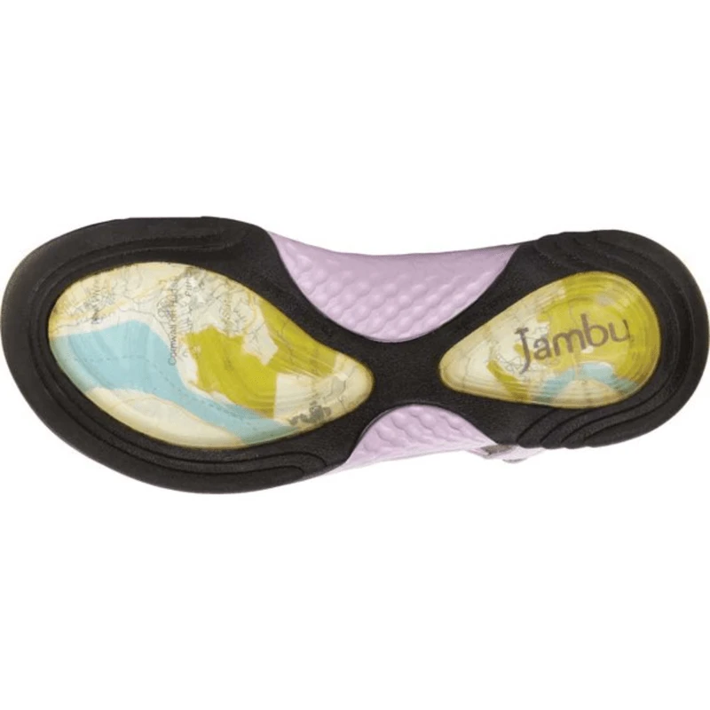 Go full-stream ahead wearing the Jambu Water Diva Encore Sandal. This strappy sandal features the Water Ready technology with quick-drying material and water drainage ports to resist the penetration of water. The comfortable EVA footbed delivers arch support and adds bounce in every step, while the non-slip All-Terra Traction outsole keeps you ready for land and water adventures.