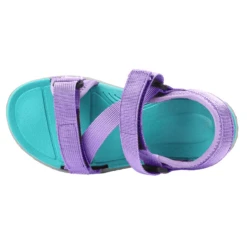 - Strong flexible upper features nylon webbing with neoprene padded backing and sporty open toe strap design.