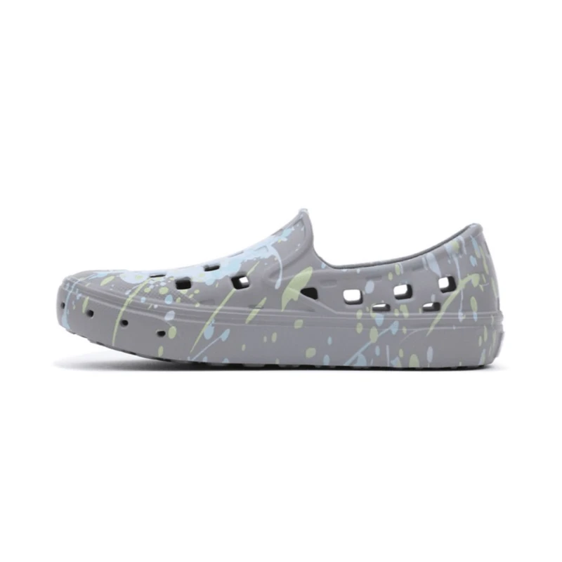 Taking the Classic Slip-On silhouette to a whole new level, the Kids Paint Splatter Slip-On TRK combines all the Vans DNA that you know and love with a durable, single piece injected construction, deconstructed checkerboard drainage holes for breathability, and an oversized reverse waffle sole for incredible traction in any situation. Designed to be lightweight and fully rinseable, the Kids Slip-On TRK is easy to pack for your next adventure, so you can slip-on and on and on…