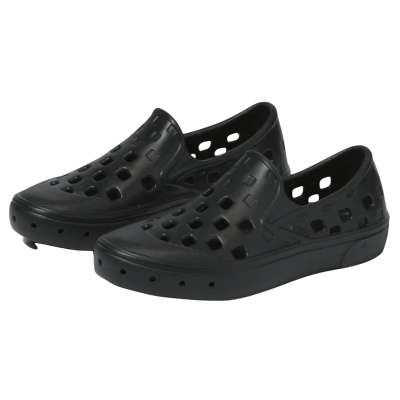 Introducing the first go-anywhere, do-anything, rinseable sandal: the kids’ slip-on TRK. Just go play, rinse, then repeat. Taking the Classic Slip-On silhouette to a whole new level, the Kids’ Slip-On TRK combines all the Vans DNA that you know and love with a durable, single piece injected construction, deconstructed checkerboard drainage holes for breathability, and an oversized reverse waffle sole for incredible traction in any situation. Designed to be lightweight and fully rinseable, the Kids Slip-On TRK is easy to pack for your next adventure, so you can slip-on and on and on…Â